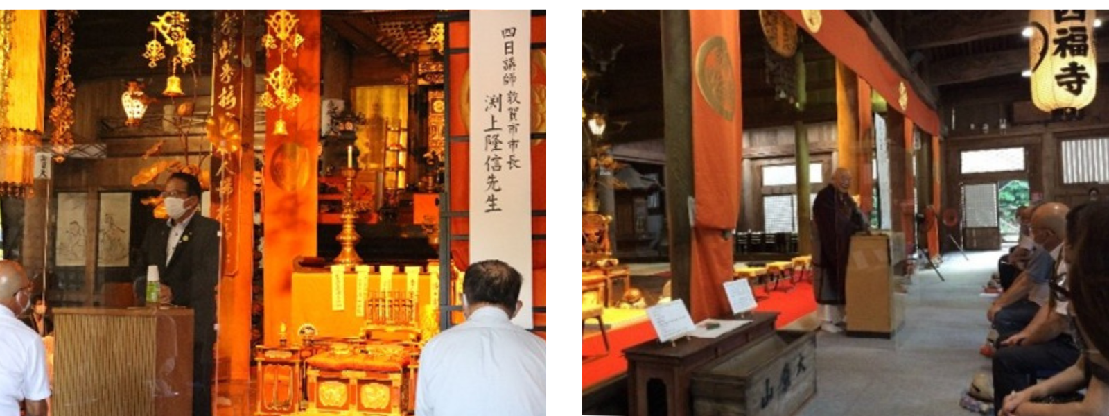 第1回 暁天講座 8月3日 講師 二橋信玄山主(右) 8月4日 講師 渕上隆信敦賀市長