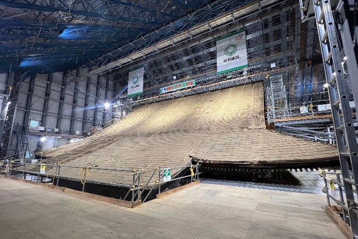 枚数にして約16,000枚、一枚一枚手作業で丁寧に取り外されました。取り外した瓦は、もう一度使用できるかを確認して、保管されます。瓦を取り外すと、屋根の下地が現れました。下地は、瓦下に吹き込んだ雨が漏らないよう、薄い板で葺く土居葺(どいぶき)、杉皮葺(すぎかわぶき)、ルーフィングシートなどが施されていました。修理時期によって材料が異なり、これまで何度か修理されてきたことがわかります。