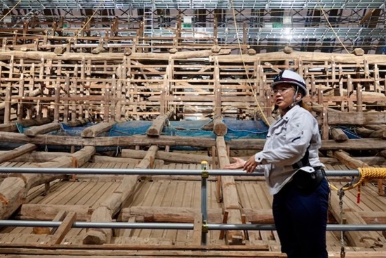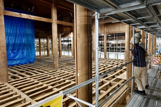 足場を上がると、屋根の骨組み(小屋組)が目の前に広がります。今だけの貴重な光景です。