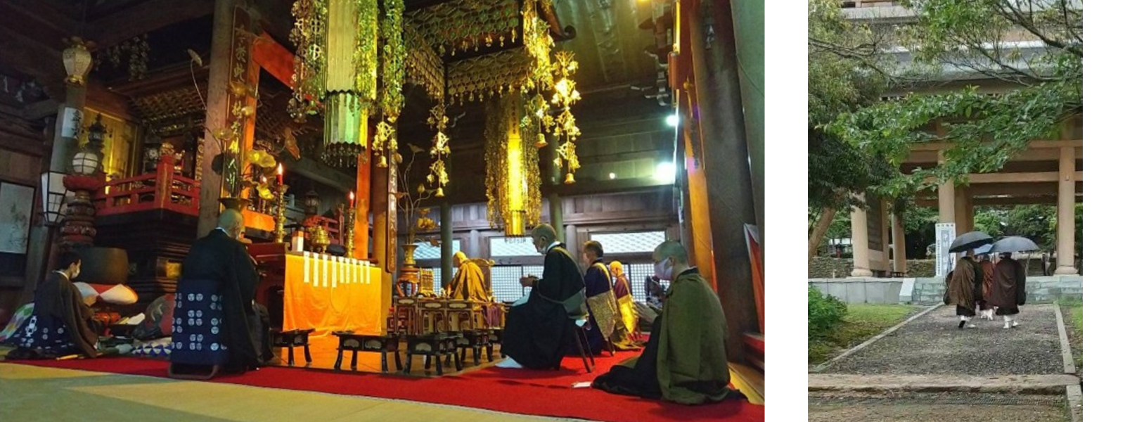 祖師前にて仮入山報告式 5月24日 三門より御影堂へ向かう(右)