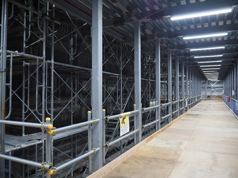 二階の作業足場にも照明が付き、前回(7月)より、明るくなりました!