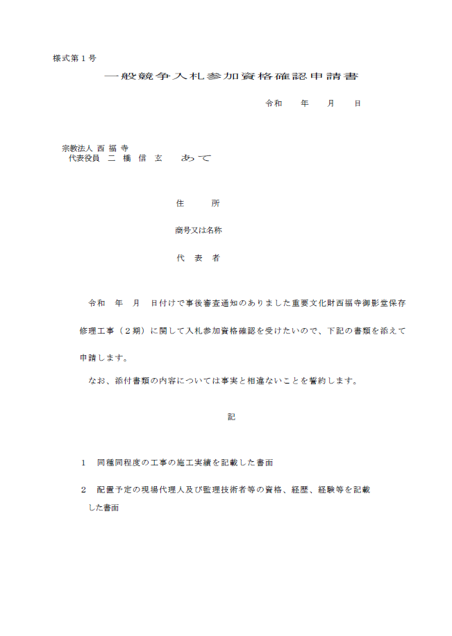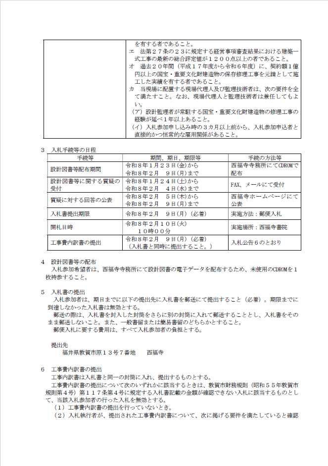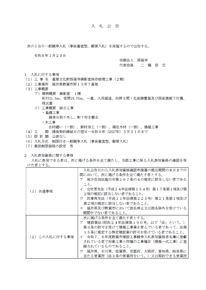 次の通り一般競争入札(事後審査型、郵便入札)を実施するので公告いたします。