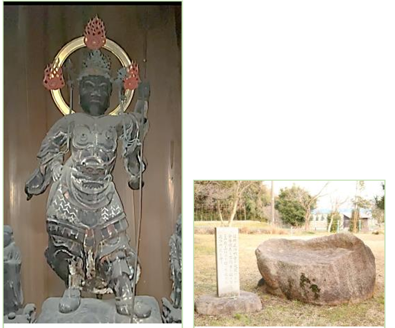 This Bishamonten statue, created by the priest Ryonyo, was previously enshrined in another Buddhist temple. When that temple was destroyed by a fire, the statue ran away by itself to stand on this rock, which is now called Bishamon Rock.